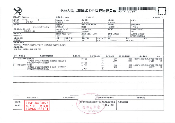 改性硅油作為化妝品用添加劑,市場需求量很大,特別是廣州地區(qū).改性硅油屬于三類危險品,通過海運方式從國外進口清關(guān)肯定有人清楚怎么操作,但是聚海小編所要講的是日本改性硅油通過空運方式進口至廣州白云機場清關(guān)的案例,可能有人反駁說這有什么難的,危險品進口手續(xù)不都一樣嗎?有什么好講的.接下來我給大家講一講三類危險品改性硅油空運廣州機場進口清關(guān)你不知道環(huán)節(jié):