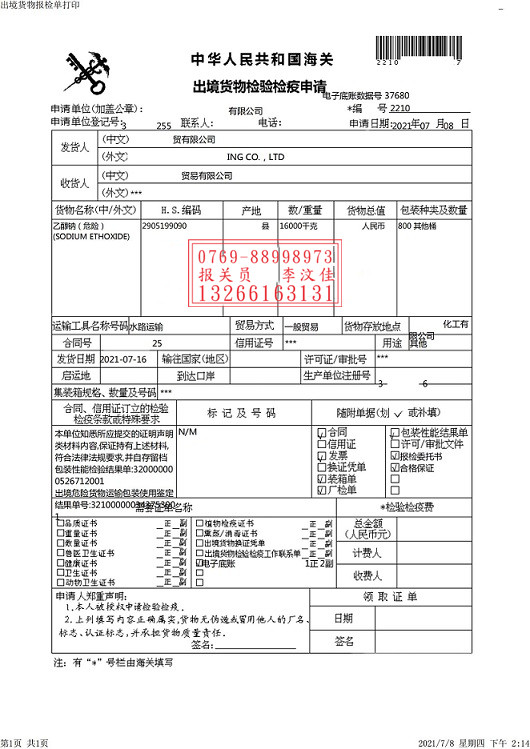 三,接著準(zhǔn)備乙醇鈉南沙港出口報(bào)關(guān)以及海事申報(bào)文件: